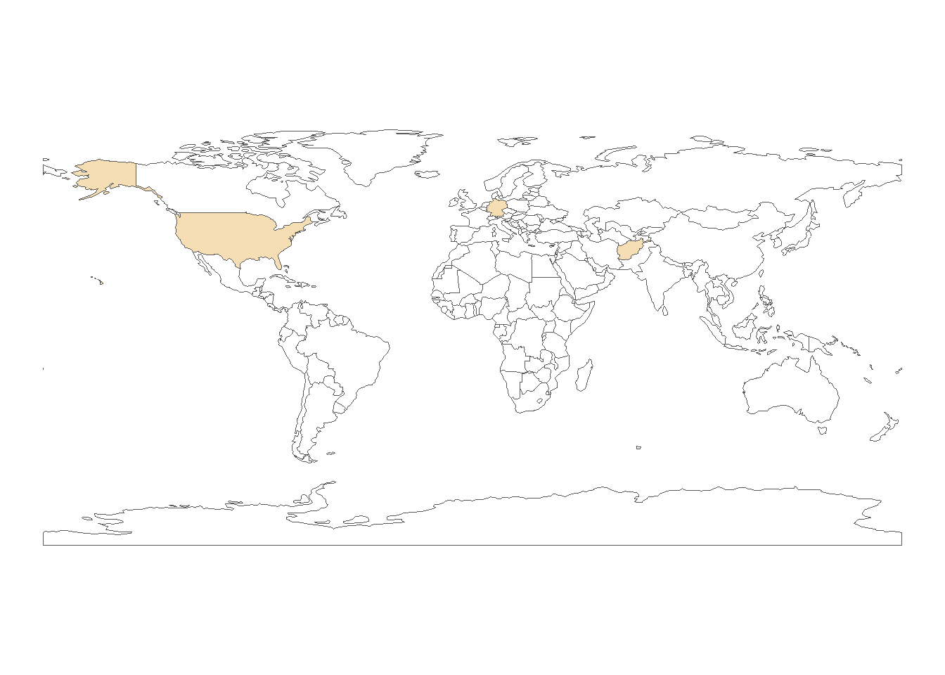 , which stands for spatial feature. We can treat it just like any other data frame, but each row has a column called “geometry”, from which the coordinates of the row can be plotted – in this case, a country’s outline.