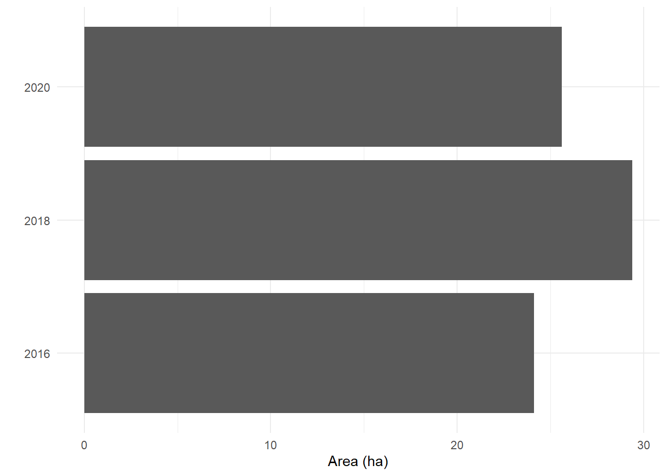 geom_col(aes(x = year |> as.character(), y = area_ha)) +
