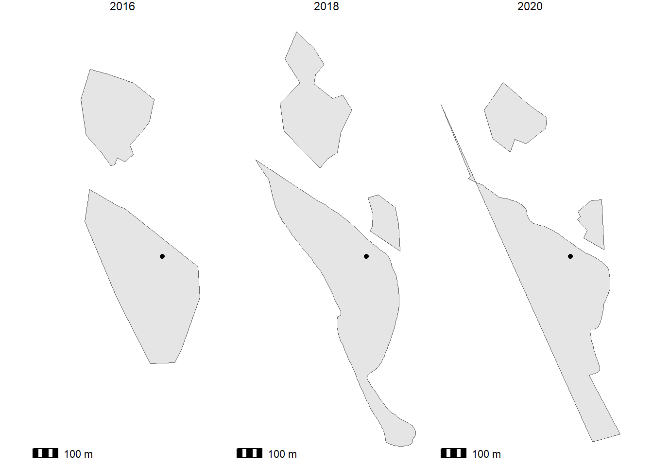 Let’s use this information to plot the landfill in the two different years! Seems like the landfill grew quite a bit in between.