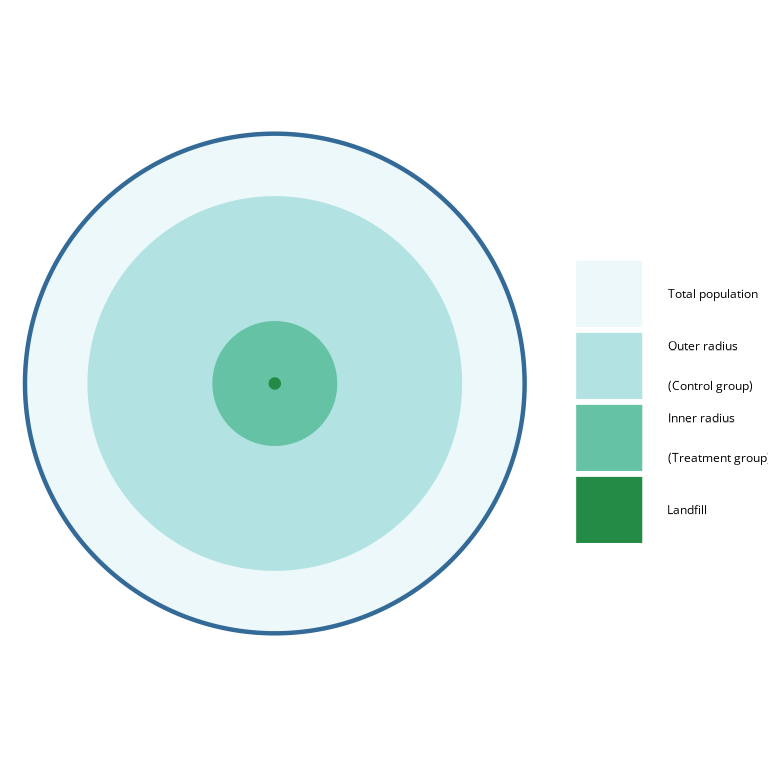 There, I analyze the effect of landfills on the nearby population. I vary 2 parameters: